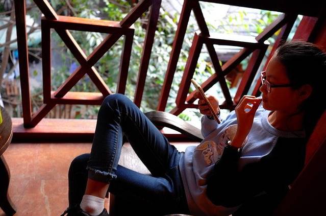 回到酒店,坐在阳台上,吃着零食聊聊天,如果能把看手机换成一本书,就更有韵味了