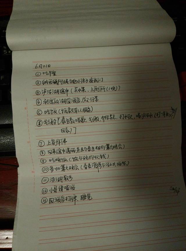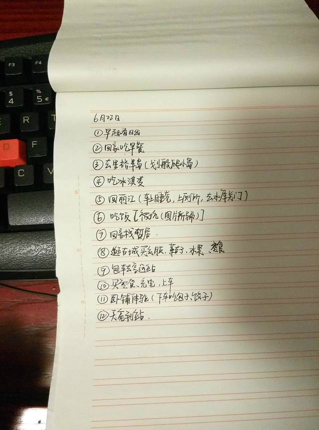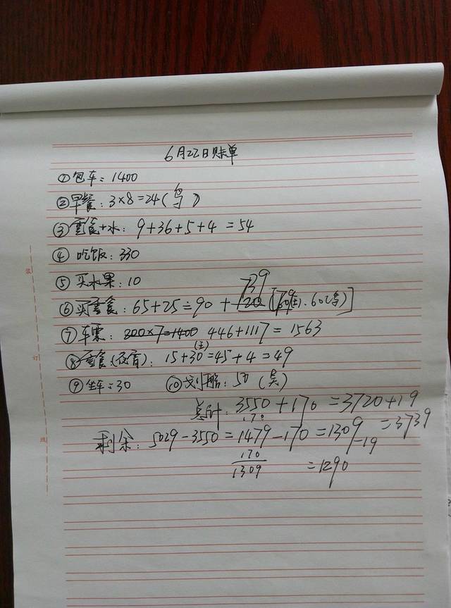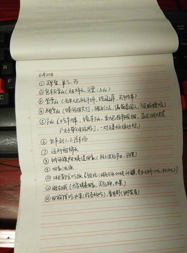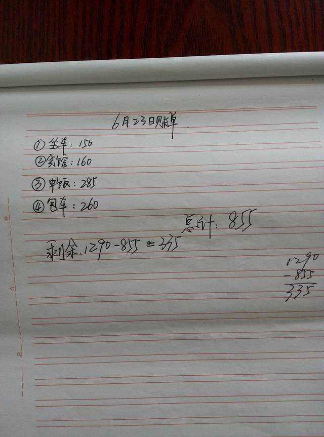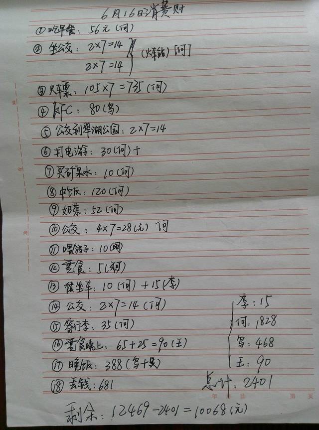 关于第一天的总结,我就先大致介绍一下。第一我们会晒上两张照片,一张是我们手写行程照,另一张是当天的账单;第二个方面则是介绍一下当天所游各景点的交通联系、饮食、住宿、等有用或没用的东西。