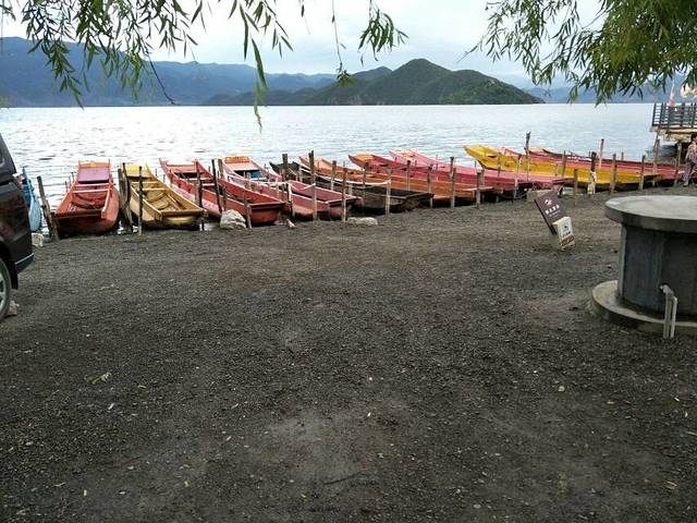 泸沽湖是可以买学生票的哦!不过胖子的准考证掉了,所以我们买了六张学生票一张成人票。至于他们本地人是不用买票的!.由于我们到这里的时候就已经快12点了,我们在观景台停留了一下,然后驱车去仙湖园酒店(只有名字好听)放行李,然后吃饭。