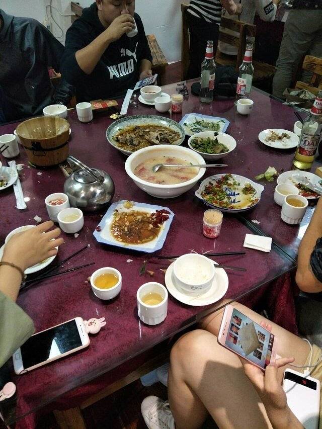 2)中餐是在大落水一家店吃的,店里只有一个人(既做服务员,又是厨师。)