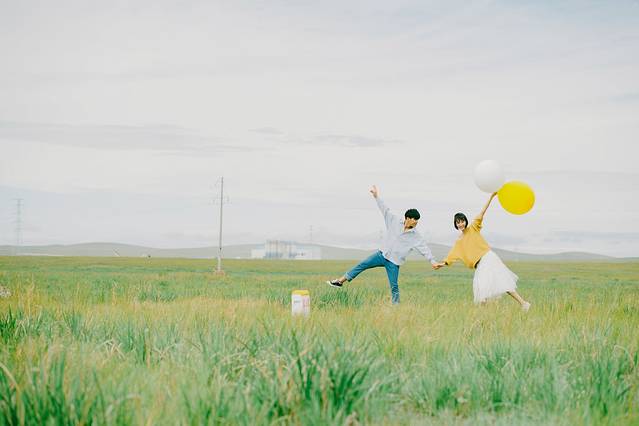 来这里的最后一个心愿,就是在大草原上拍一套婚纱照