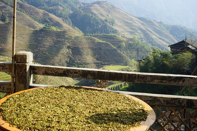 热情的苗族妇女在我们等菜的间隙还免费泡茶给我们喝,感觉这山茶与眼前这美景很配哦。