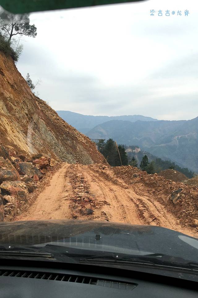 为了保护梯田,上下山的车辆只能走后山的路,这哪是路啊,简直有越野的感觉,老板边开还要边停下来搬开路上阻挡的石头。如果遇上下雨天就更不能开了。借用朋友的照片让大家感受一下。