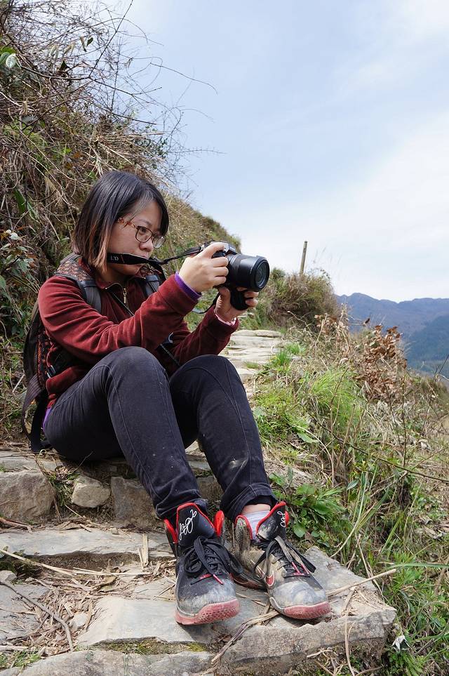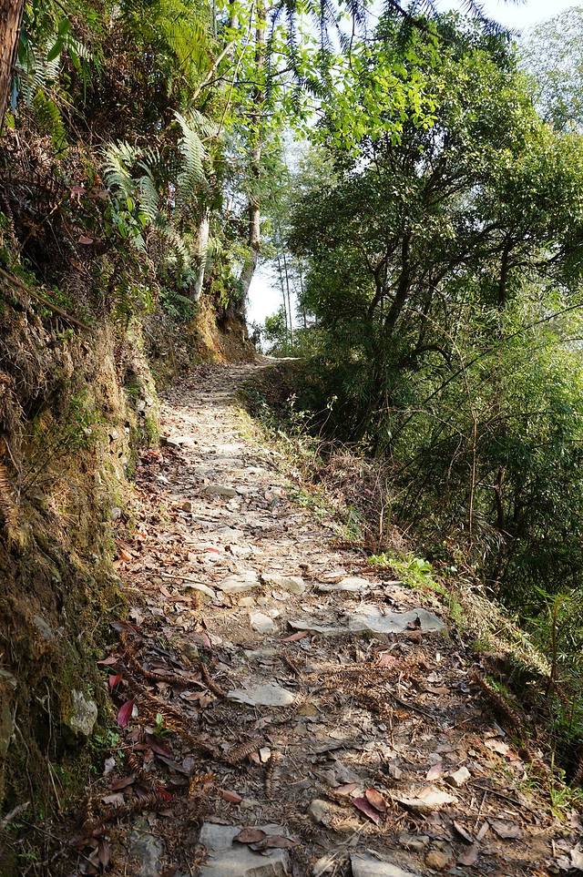 也不记得出于什么原因,从这里开始我们走起了非常规路线,就是不走石板路,而是跟梯田来个亲密接触。其实我们后来发现这么走其实没比走石板路快多少,或许时间可能会用得更多,因为雨后的泥土有点湿滑不太好走。