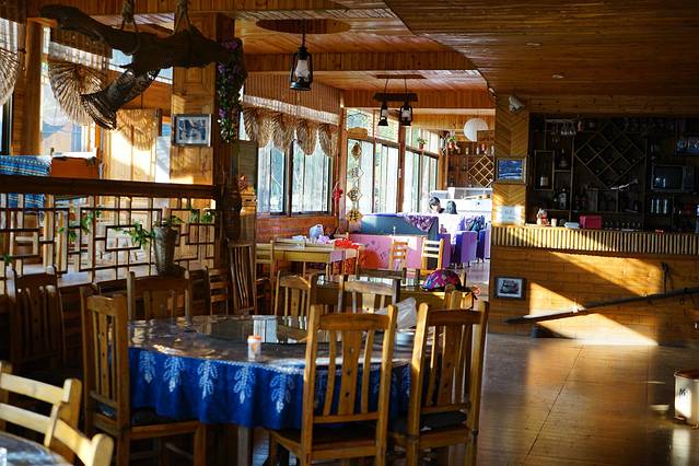 云景山庄里面其实还分了两边,一边布置得比较传统,令一边叫聚缘客栈,布置得比较小资,其实是云景的老板出租出去的。两种风格适合不同的人群。我们订的是云景山庄,Herman订的是聚缘客栈,其实是同一栋楼房,真是巧合。