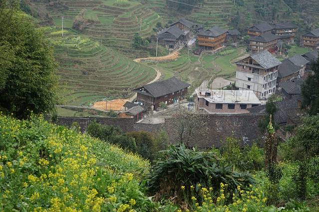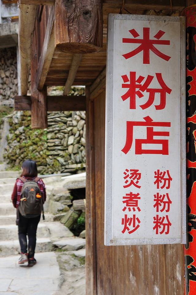 路过市集,进入大寨最热闹的中心地段,这里的商业味明显比金坑大寨浓很多。一波一波的旅行团在身边路过,导游们拿着大声公解说的声音此起披伏。我们随便找了家餐厅以最快的速度解决好午餐,尽快离开这片嘈杂之地。