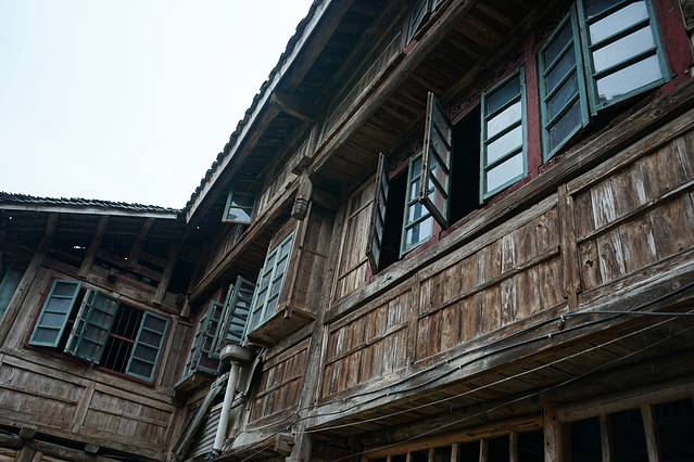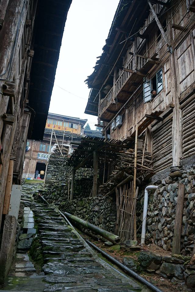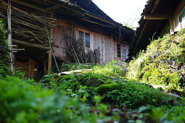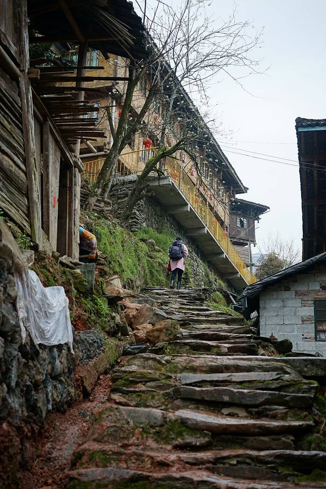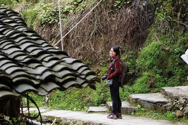 这里的房子主要都是木造的。湿漉的石板路显得更有味道。由于我边走边拍,大吉状态也不佳,我们实在走得很慢,半路还坐下休息。帅哥一路在前面探路,没有他带路我们恐怕会迷路了。