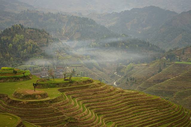 这角度看下去的梯田令人想起菜花陪午餐肉