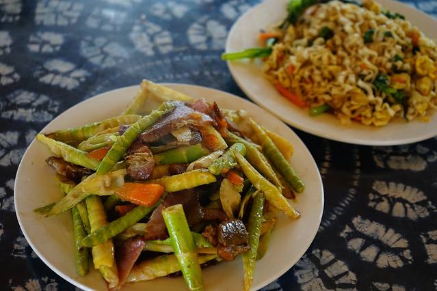 隔壁桌是一位当地人带着一对外国夫妇,他们是从平安寨步行过来的。他们说那边已经放水了,很好看,就因为他们的这句话我们对之后的行程更明确了。先去二号景点,然后回客栈补充行装赶在日落前到三号景点。然后明天去平安寨。这变化真够快的。