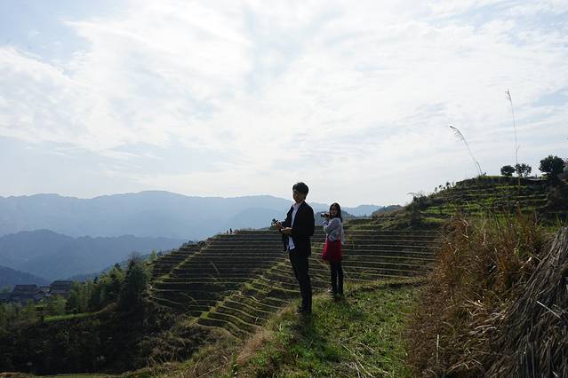 看着这美景,吹着山风我有点舍不得走了。关键是我脚下就是深深的山坳,有点腿软了,大吉一直话畏高的人不应该来梯田
