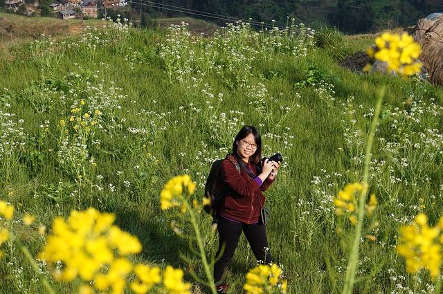 一号到三号景点比较远,常规步速要一个小时。像我们这样边走边拍的更不止了,何况碰上两位爱拍照的美眉,又是初来乍到,对每个景都充满了好奇。途中我们一度还是走散了,本想就各走各的吧,没想到这遍山花把我们又聚到一起,看来有缘的还是会再相见的。