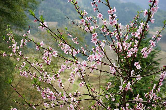 走了大约三分之一的路到了一家叫大寨旅店的地方,几对外国人在这聊天用餐,刚开始我们是被门前这棵桃花给吸引过去的,后来想想要不就在这午饭吧,时间也不早了。