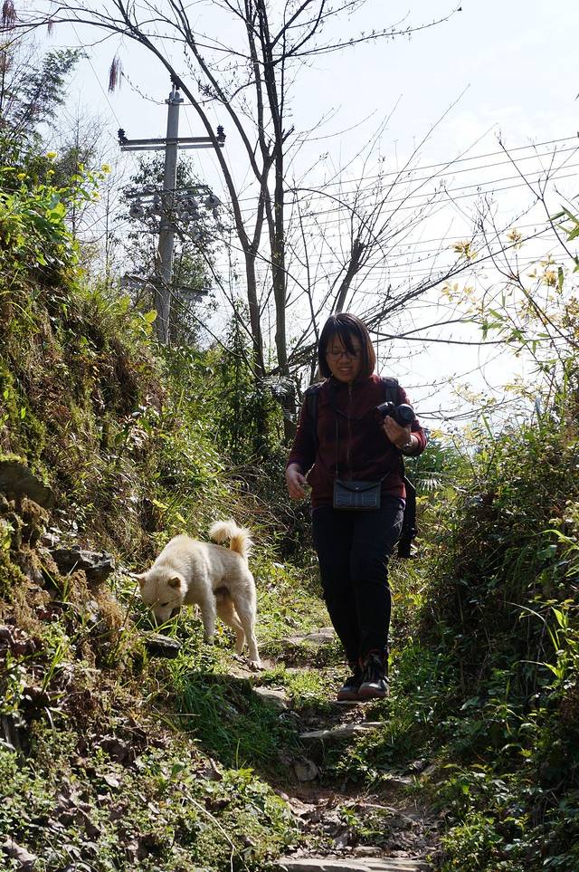 路挺陡的,走起来还是有点费劲的。露一下大吉瘦弱的身影。
