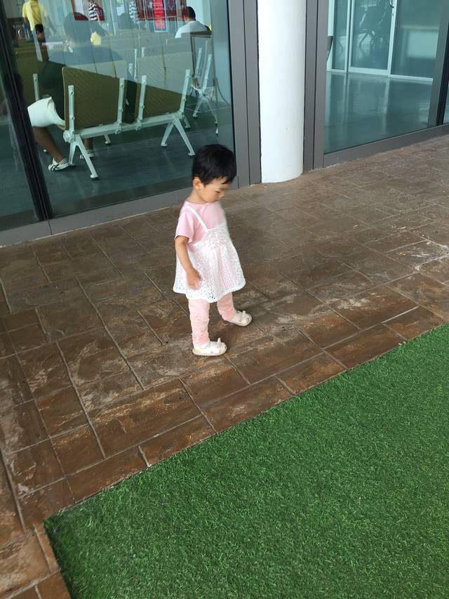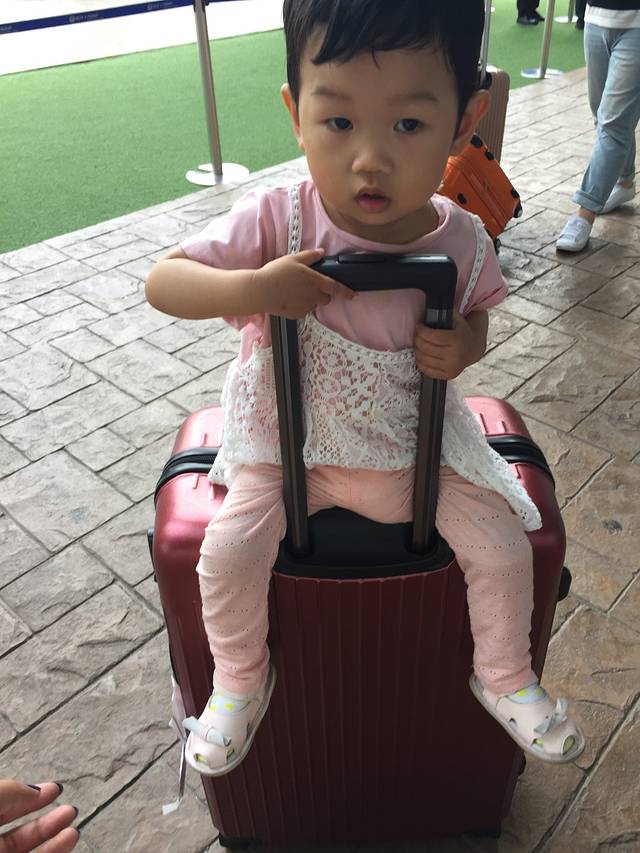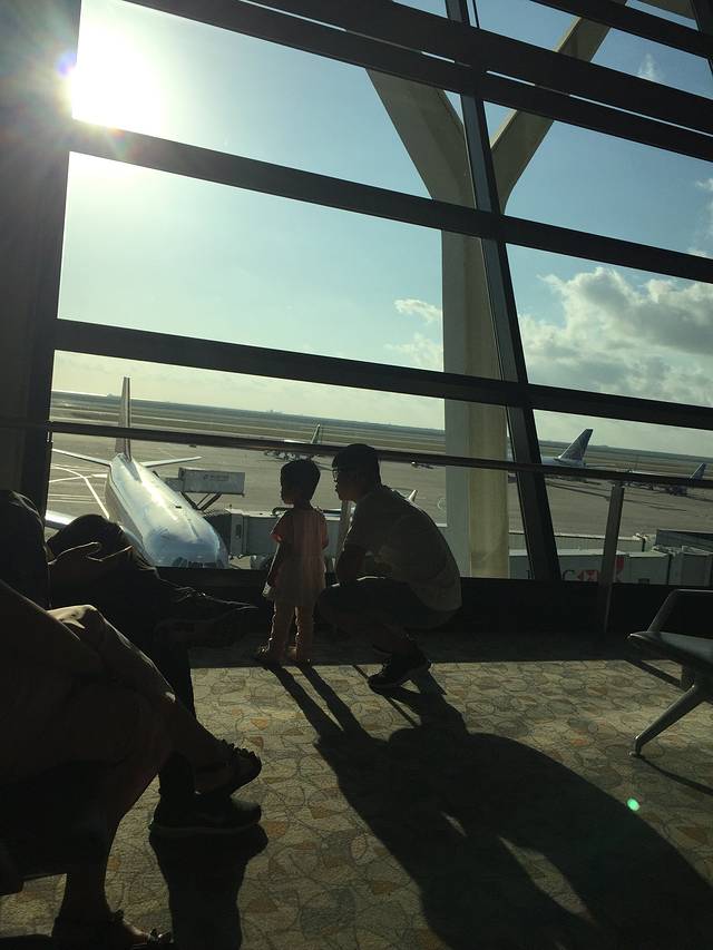 女儿第一次近距离看飞机,超级开心