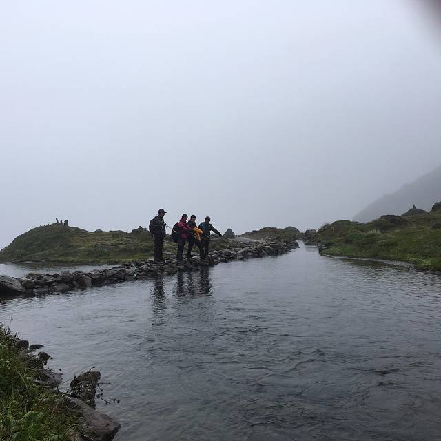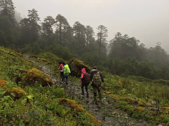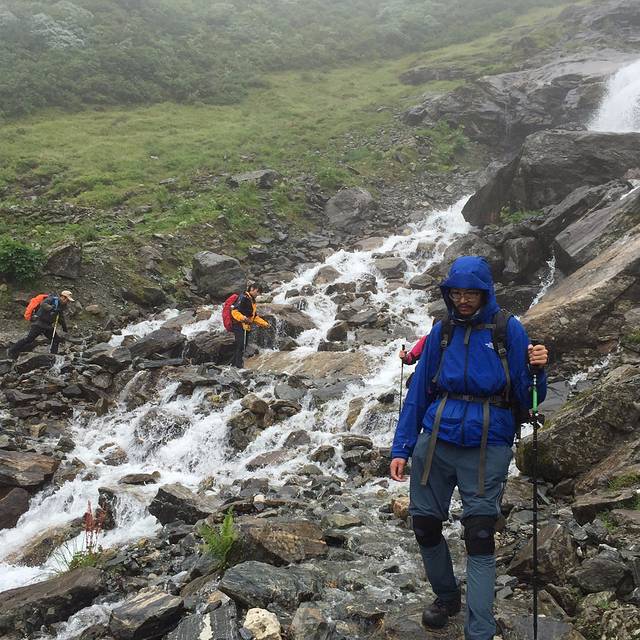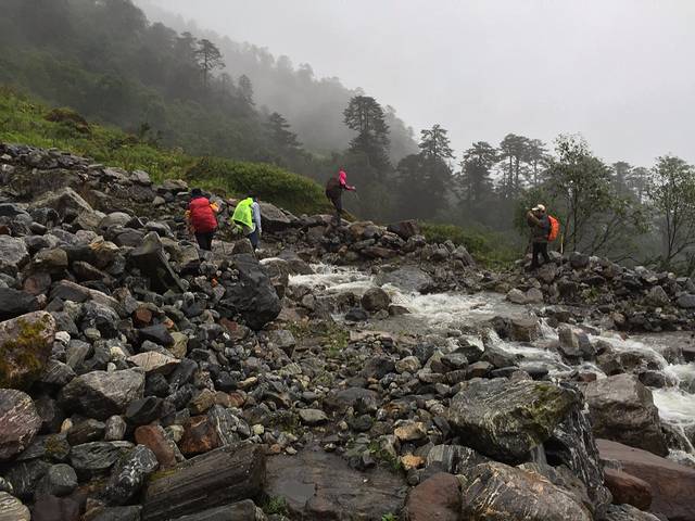 每段路,都会有一些特别的记忆,这段路是跟平SS一起走的,他还调皮要到水里冲脚;那段路,是跟凯哥一起走的,他跟我一样,恐高,扶着石头谨慎通过;这段路,是跟小星星一起走的,我们蹲在多雄河边听着隆隆的水声抽着烟;还有那段,姐夫有点走不动了,我说要用登山杖戳他屁股……