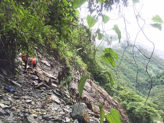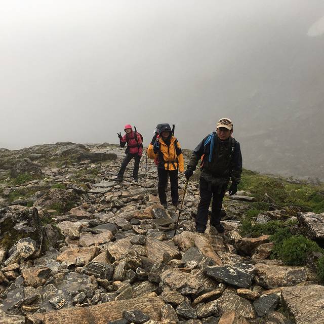 鹏哥非要把我背包里的东西分担给大家,我担心他们的体力问题,没同意,只是把白酒丢给了体力好一些的龙胜。一路上,鹏哥一直在叨叨说要跟我换包包背,或者把其他东西都拿给他。他那破包,根本没背负,我不想肩膀的伤也犯了……虽然明白他的好心,他担心太沉的背包会给我的膝盖带来更大压力,但他絮絮叨叨的真的很烦,一句话堵死他:我知道后面的路是什么样,大概还有多长,根据这些我都能分配好自己的体力,安排怎么用膝盖,你知道吗?万一你废在路上,那不是让我更难办?自此,鹏哥不再提换背包的事情,只是强制抽走了我放在侧兜里的水瓶。