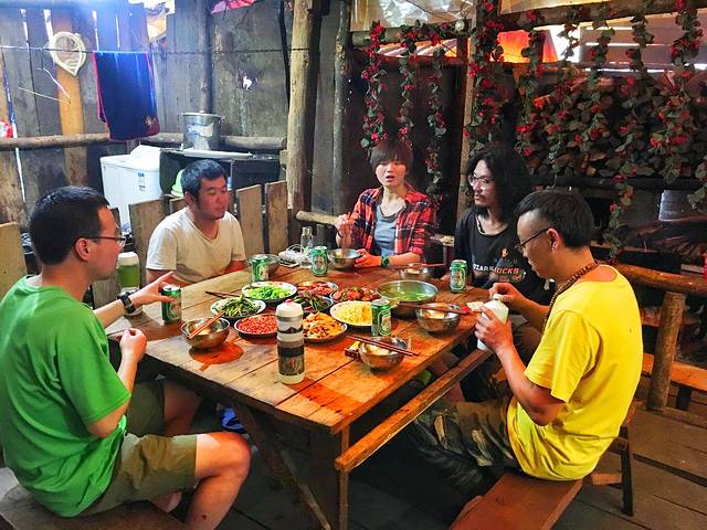 到眼哥家后,安排他们先在门口清理一下蚂蟥再进屋。这里有两个梗,其一是龙胜的,其二是小玲子的。早上出发时就跟他们说,今天晚上能洗澡了,爽到不行,龙胜问是淋浴吗?我冷笑一声:你想多了吧,那种地方能洗个澡都不错了,还淋浴,给你烧锅水,兑上凉水,用瓢往身上浇。龙胜说,那我还不如直接下河去洗呢,雨季的河,呵呵,你去洗吧。结果刚到眼镜哥家,丫在门口就把自己扒得只剩下裤衩,第一个冲进去洗澡。在八一的时候,我洗漱完拿出一片面膜敷上,小玲子开始质问我:你不是说装备从轻从简吗,自己都带着面膜,还要我们少背点……结果我洗完澡出来,小玲子看我脸上又贴着面膜,马上换了一张卖萌脸,可怜兮兮的说,能不能给我一片呀……你们就这点出息。