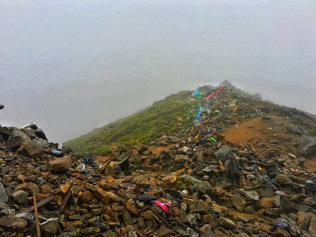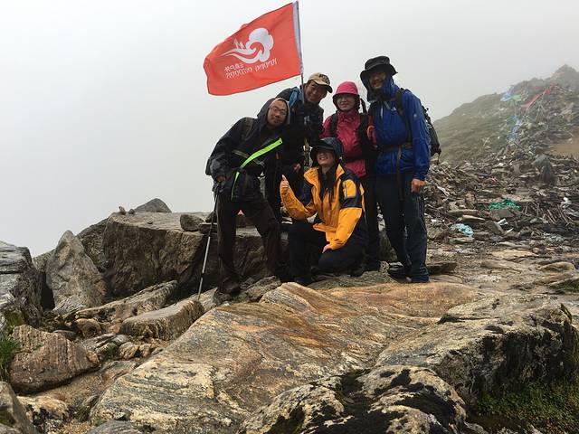 老来在前面开路,我收队。老来是我们队伍里的身高担当,这家伙一步顶我们两步,刚爬坡的时候,小玲子 和鹏哥都有点走不动,好在老来懂得走一段要回头看看,等等同伴。最近一次走墨脱,已经是一年多前的事情了,加上那次带着机长走得真的很慢,我们的速度,我已经无法估计,只是看着前面不远的山头,感觉那就是多雄拉垭口,可有点不相信,只是用登山杖指向那个方向,告诉他们要往那边走。没想到走了十分钟左右,卧槽!真是垭口!!才8点半啊兄弟们!你们要不要这么给力!!