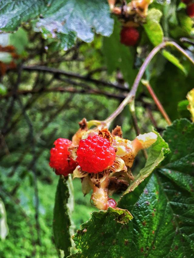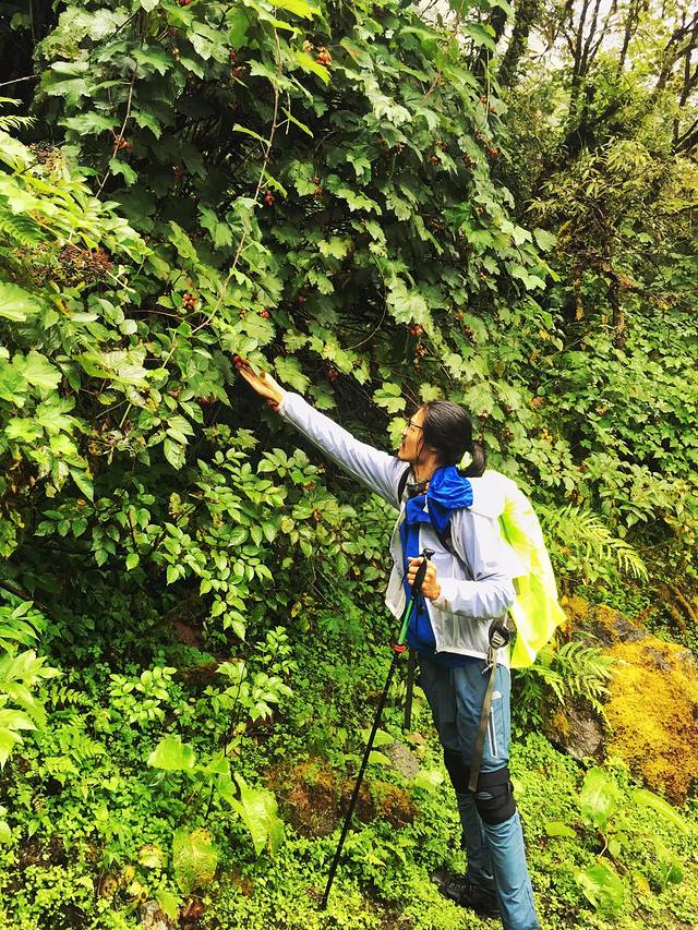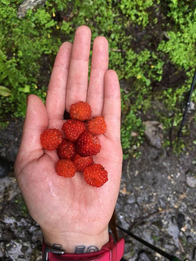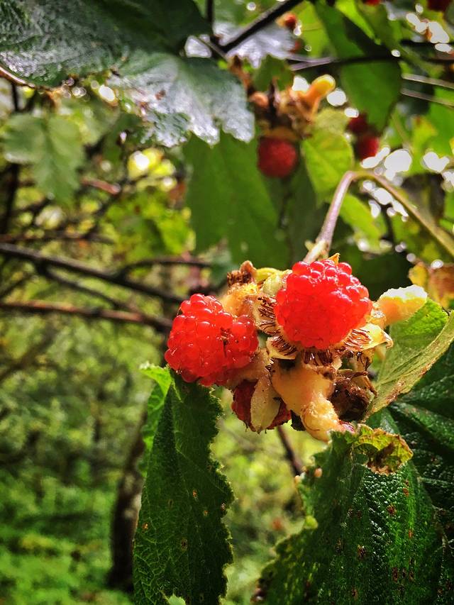 这一路还是非常开心的,摘野草莓、桑葚吃,红彤彤的桑葚上还落着雨水,摘一把丢进嘴里,第一口咬下去直接爆浆,整个人都吃高潮了!