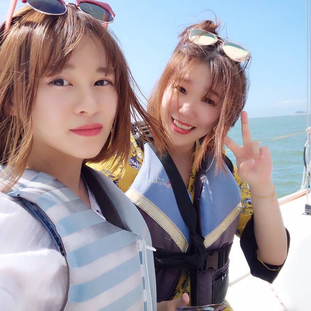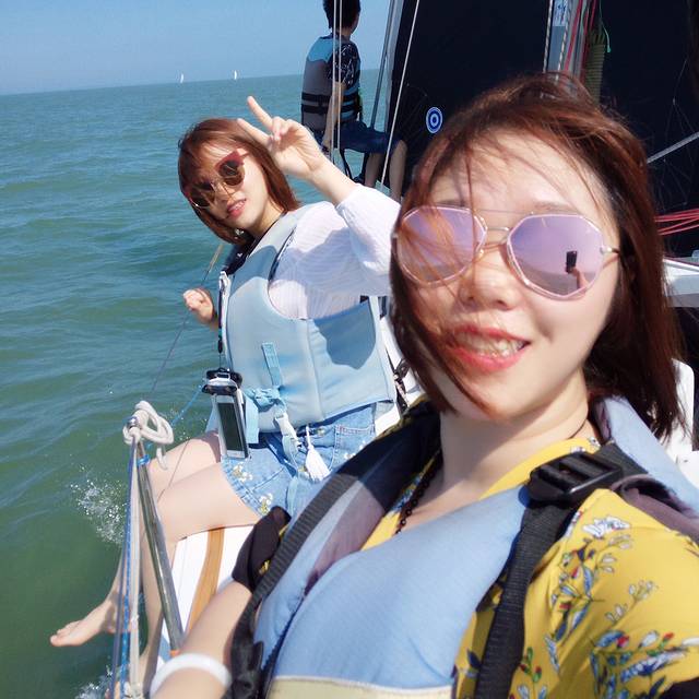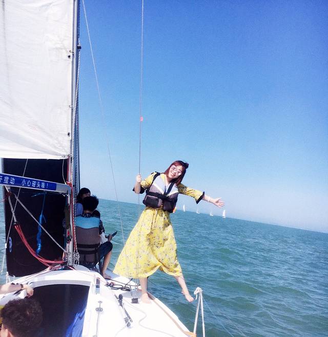 吃完饭 我们就去出海啦 可开心了呢 遇到一个可爱的船长蜀黍 超级幽默 对了 我们是让酒店前台直接帮我们联系的 车接车送 带门票80 然后也不用排队 去了直接安排出海了 七个人一个帆船 我们还在上面录了 白色风车 真是越来越爱周杰伦了