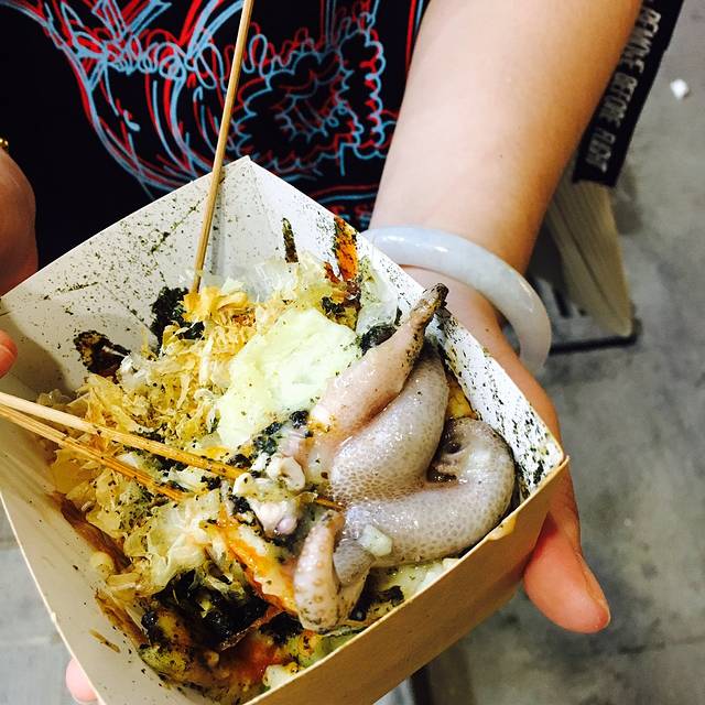 晚上7.00 我们打车去了中山路 因为金砖会议 好像在整改 我前年喜欢吃的都不在了 但是发现巨好喝的吃茶三千 还有好吃的章鱼烧 真的有章鱼哦~
