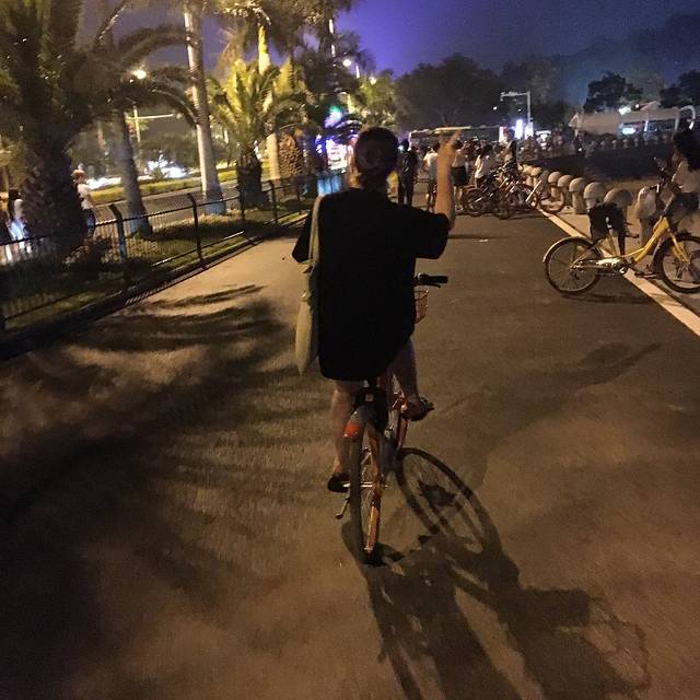 逛吃逛吃之后 我们就坐公交车回曾厝安 别问为什么半夜坐公交 下午打车 我也不知道 哈哈哈哈 但是公交太挤了 所以我们到白城沙滩就忍不住下车了 刚好看到自行车 就骑车回曾厝安 这个车是一次1一块钱 但是第一次要押金299 这个比较方便哦 就是你不骑了直接锁好就可以了 不会说非要停到指定位置