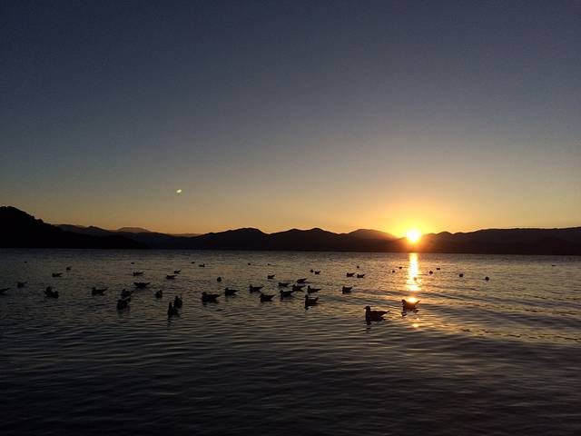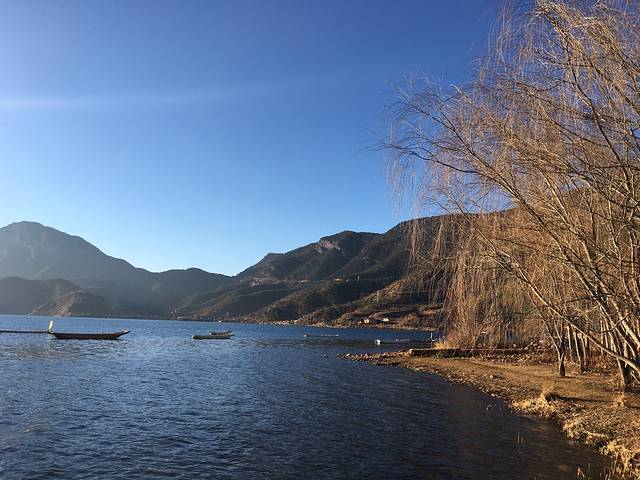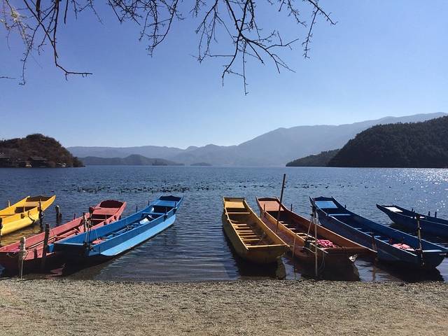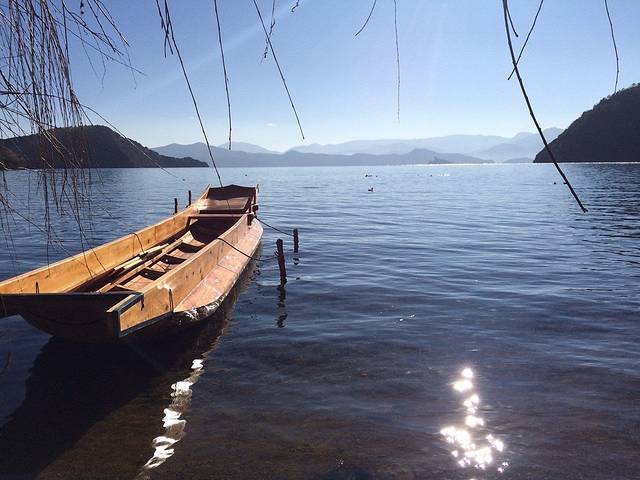 看日出可以坐当地的猪槽船,湖边有很多叔叔阿姨很早就在那里等客了,10块钱一个人往返,他们还会自带柴火下船等日出的时候点给大家烤。因为一月份早上的泸沽湖真的很冷,要那个时候去看日出的记得把能穿的都穿上,那天早上差点被冻僵在湖边,看着那些阿姨们穿的加厚的类似于雪地靴的棉鞋再看看自己的小布鞋,简直要哭。