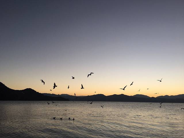 然后所谓的环海西路好像也没有想象中的那么惊艳,有些地方公路离洱海还有十来米的距离,几乎都被客栈挡住了,只能从缝隙里看到洱海的影子。