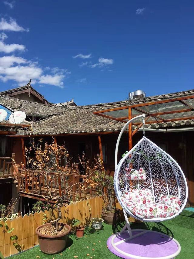 这个客栈位置在外面一点,开了有段时间,所以看起来不是非常新。但房间算是干净,老板也挺好讲话的。店里自带餐厅,一日三餐都可以在这里吃,要求不是非常高的可以选择住这个客栈。店里有只金毛叫“姑娘”,我男朋友去云南那么多天,为数不多的动态里有一条就是专门为这只金毛“姑娘”发的,我至今耿耿于怀。