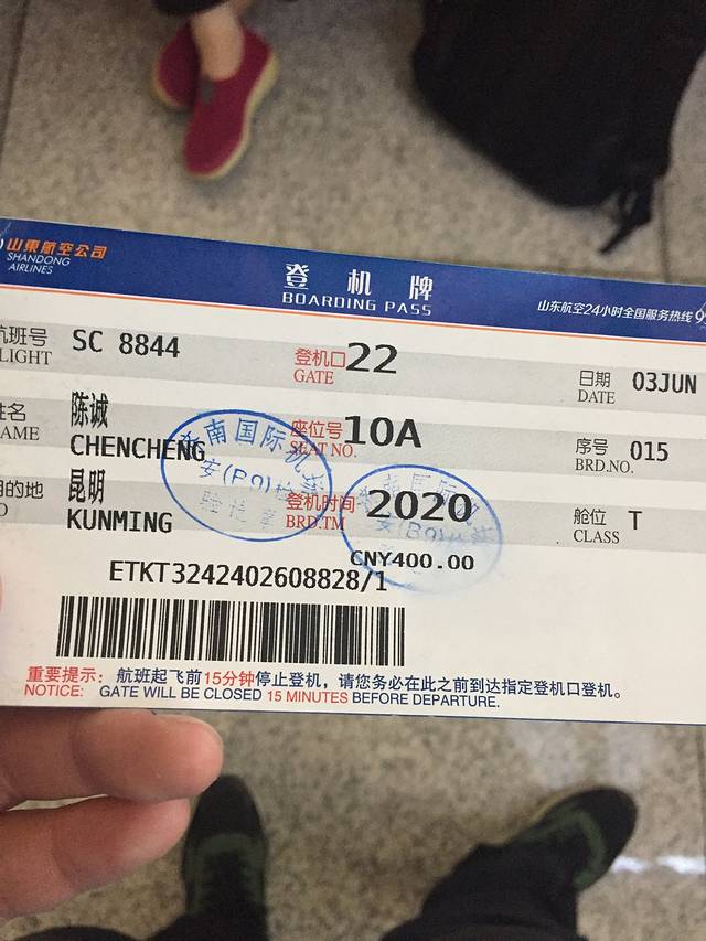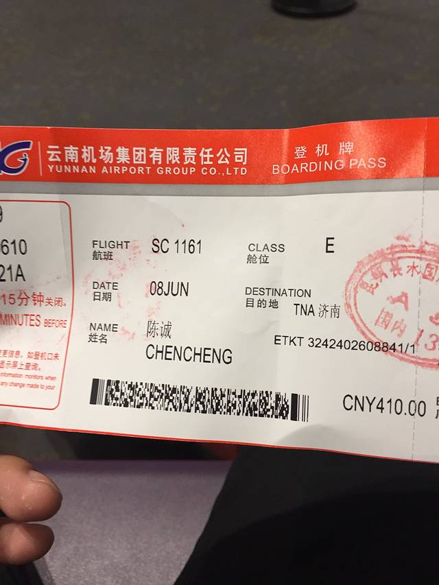 人生第一次坐飞机,晚上订的特价机票从济南飞昆明长水机场。凌晨2点到的酒店
