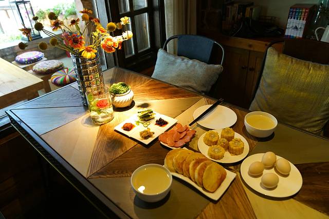 第二天清晨,虽没有闹钟,却仍然被窗外叽叽喳喳的鸟叫声叫醒,早早起床了。说来也怪,平日周末,如果要早起,总有一百个不情愿,但此时却丝毫没有迁怒鸟儿们,仿佛这样一个远离喧嚣的周末,就该是早睡早起的健康时间表,再配上这样一份自然营养的早餐。