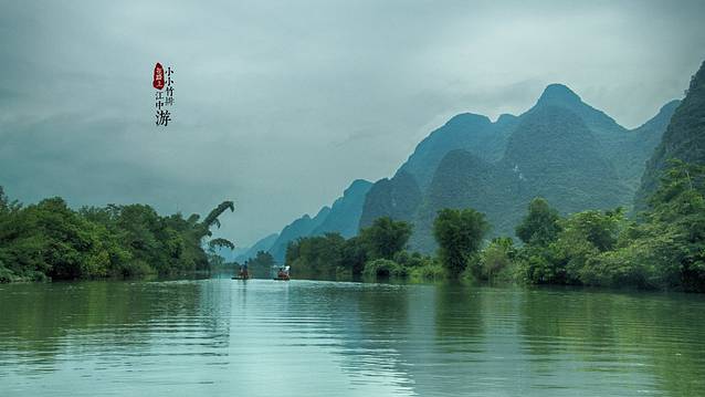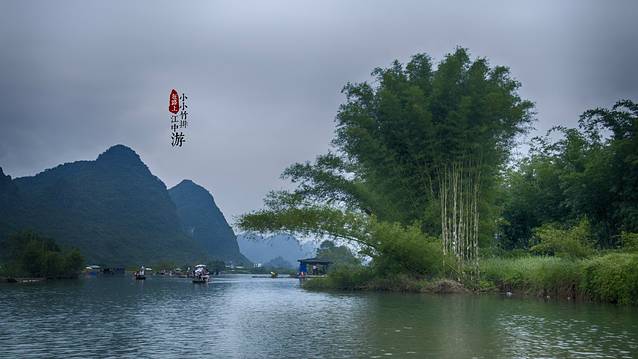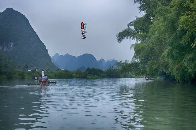 好好欣赏风景,江作青罗带,山如碧玉簪。一叶小小竹筏,将我送入这百里画廊。