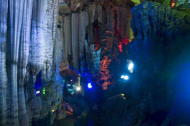 桂林山多,有山必有洞。如果不看洞,等于没有到过桂林。 每一个溶洞,各有千秋,都有一个迷人的世界。不论是早已名扬天下的七星岩、芦笛岩,还是近年新发现的“明珠”丰鱼岩、银子岩等,都让人为奇特的大自然神奇造化所陶醉。朋友一直推荐位于荔浦县的银子岩。于是我们让客栈掌柜帮忙预订了门票。这里有人流控制,每个解说员带着一定数量的游客入内。