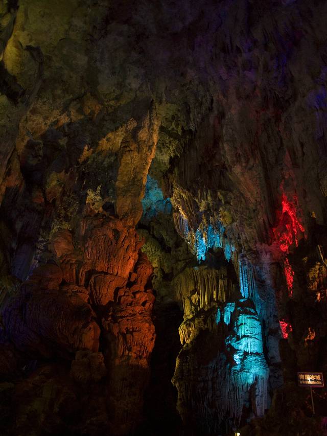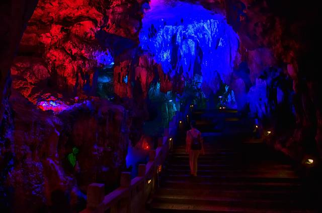 进入洞内,顿时感觉凉爽,里面的还能听到水滴的声音。怪石嶙峋,在灯光映照下分外娇艳。