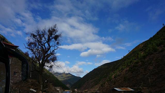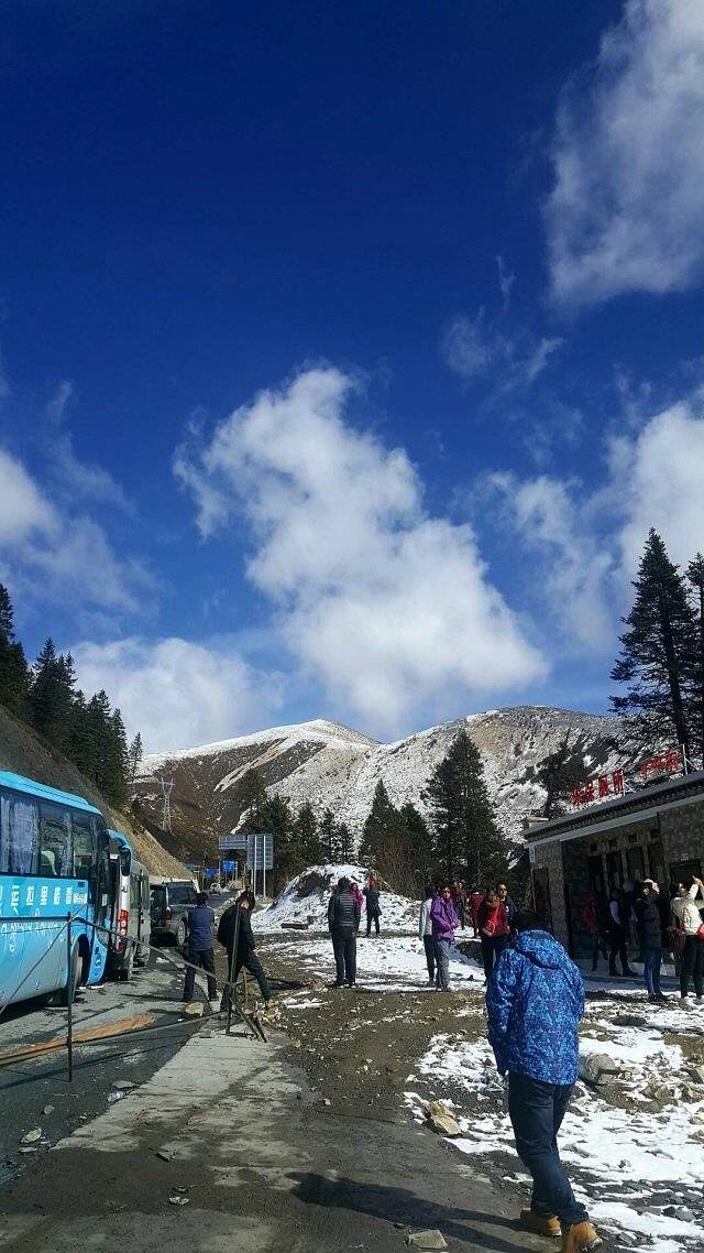 中途停车,司机用天然的水冲冲车,图图没有下车。天放晴,竟也能领略如此美景,我用相机记录下这湛蓝纯净的天空。