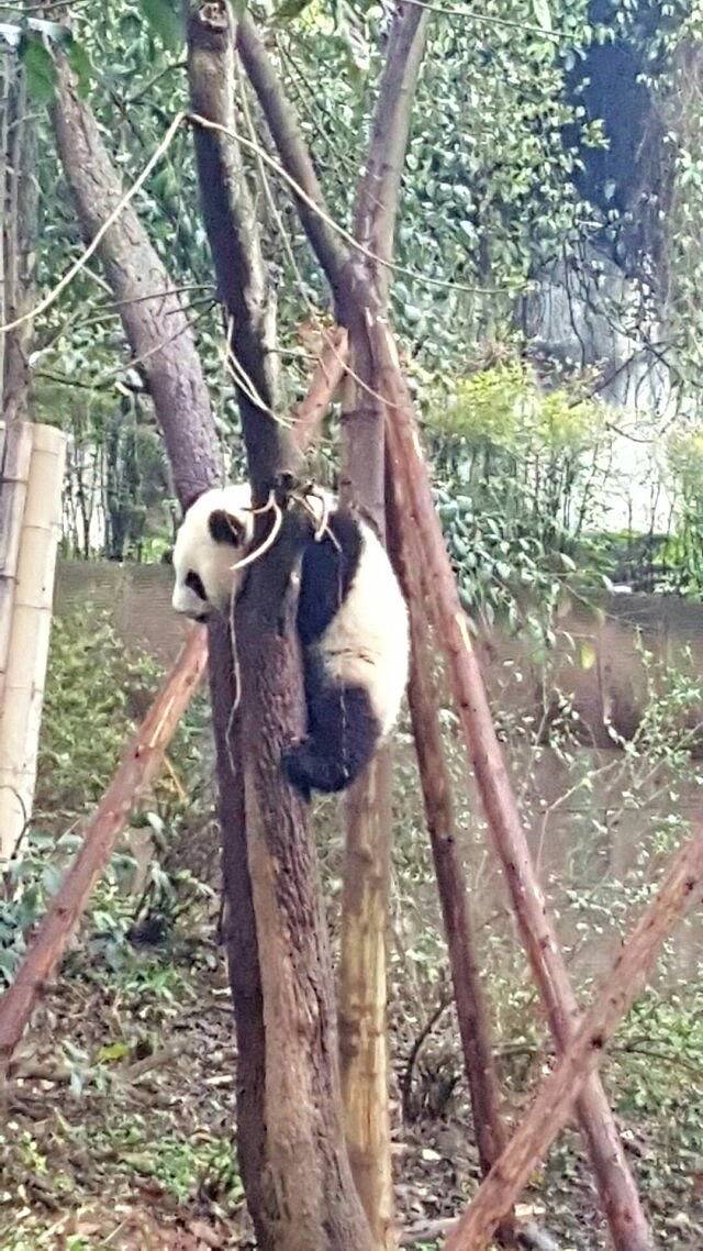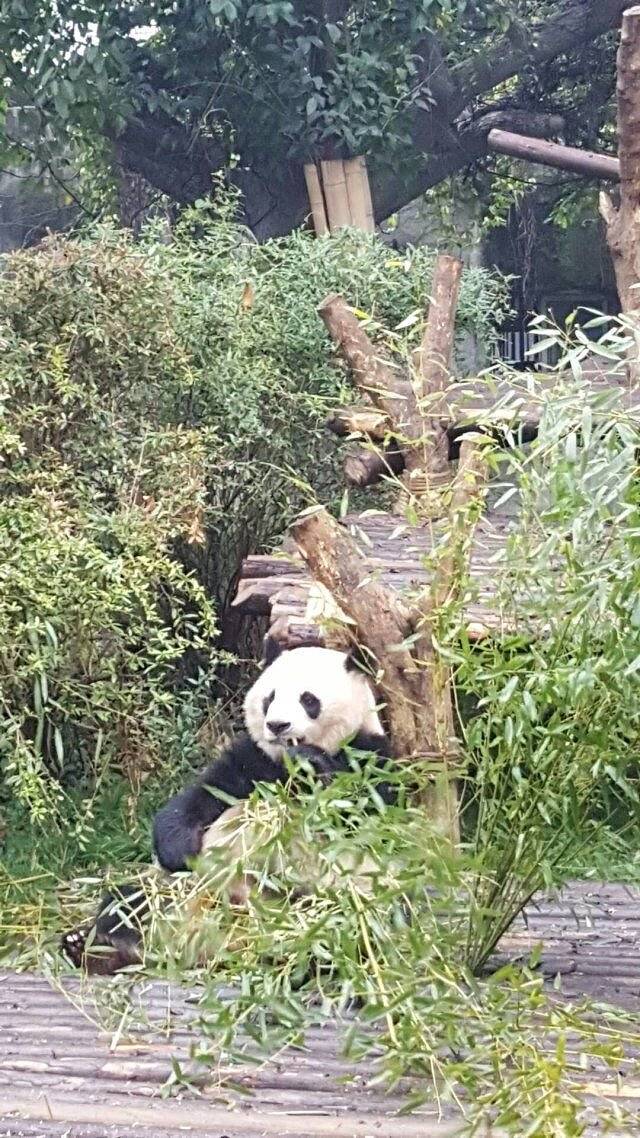 说起成都,脑中总会冒出几个关键词,其中必有“熊猫”啊!图图那么爱小动物,怎么能错过可爱的熊猫呢~~前一天还盘算着到底可不可以既玩熊猫基地又去都江堰呢,因为明天就要出发去稻城了。还好昨夜我俩休息的很好,早早就醒来。6点多,天刚蒙蒙亮,雨已经停了,早起的鸟儿有虫吃,尤其是在西南地区这个点已经很早很早,早到找了半天才找到一个卖早餐的小贩。。。早就搜了攻略,说去熊猫基地一定要在上午,否则中午之后团子们就回窝睡大觉啦~所以一定要上午去哟。早早搭乘地铁再转乘公交,距离还真是不近呢,再次感恩现在这么发达的地图软件,让我们带着手机走遍天下都不怕。这两天的天气都是阴有小雨,进入基地,很多人排队去坐游览车,其实没有必要呢,园内环境很幽美,植被茂盛,是天然的氧吧,走一走身心舒畅~唯一的不好就是脚下的栈道很滑很滑,宝宝我摔了一跤。。。嘤嘤嘤。。。一个个可爱的团子在雨后清新的早上抱着竹子啃啊啃,有的活泼的不停的爬啊爬,还有的互相挤呀挤,萌出一脸血,看着这些萌物心情大好,却也不能做过多停留。。。还要赶往下一个景点,此时已是接近10点的样子,返回大门时游客已经排起了长队。