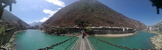 相传康熙帝统一中国后,为加强川藏地区的文化经济交流而御批修建此桥,并在桥头立御牌。并写下“一统山河”四字,反过来念为“河山统一”!该桥是中国古代桥梁建筑的杰作,而我们所熟知的,则是红军“飞夺泸定桥”,谱写了壮丽的篇章。这就是红色教育的基地啊。