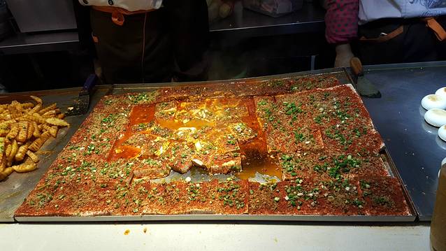 作为一个吃货,凭借微弱的记忆,我想到了上次去买兔头的那一家店,但店名叫什么已经忘了(手机木有去哪攻略的app否则找之前的游记也能找到呢),然后就是上网搜呀,果然被我搜到了,都江堰市的这家老号尤兔头,这次我可记住了,景区出门走大概十分钟的样子吧,就在右手边。这时是3点钟了,店里食客络绎不绝,来来往往,我们点了猪脑花、五香兔头(实在受不了辣了)带走,老板还贴心的为我们提供了热水哈哈,提着就去城铁站了,路上还买了一个大妈的红糖糍粑,大妈还配合的让我拍摄制作糍粑小视频,真的很开心,旅行就是应该充满好奇心。城铁候车厅没有座位,我们索性坐在路边,一手一个兔头,一手一个糍粑的吃起来了,这里要为老号尤兔头点个大赞,五香的兔头也别有滋味,浓浓的花生酱味,吃起来浓香可口,回味无穷,一点不输辣的哟,图图边吃边称赞棒棒棒,哇咔咔!~~~糍粑也是软糯香甜,趁热吃美极了。