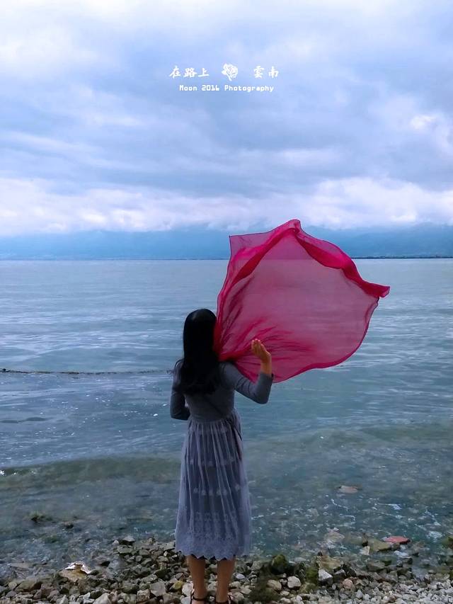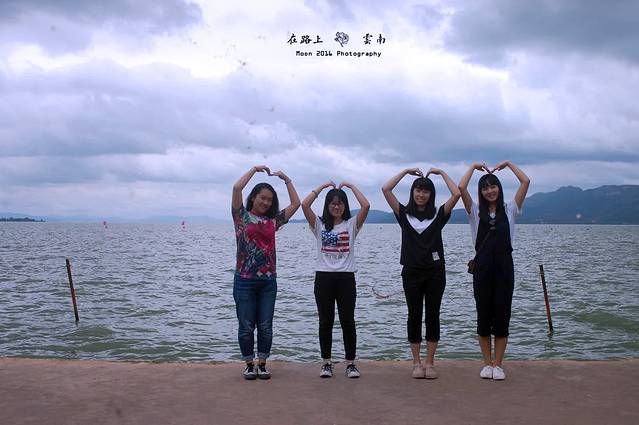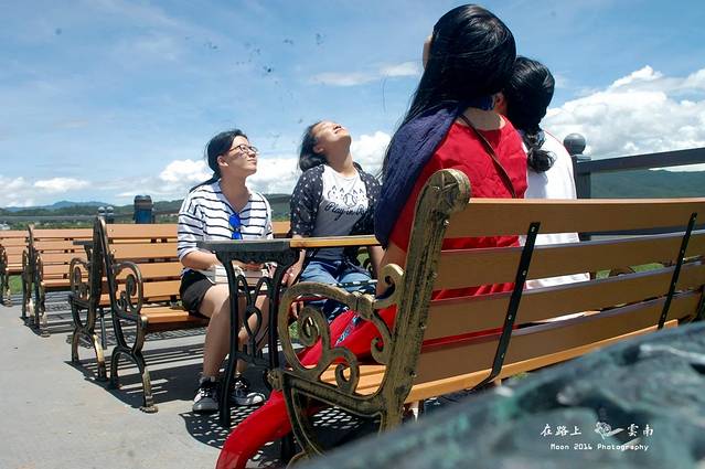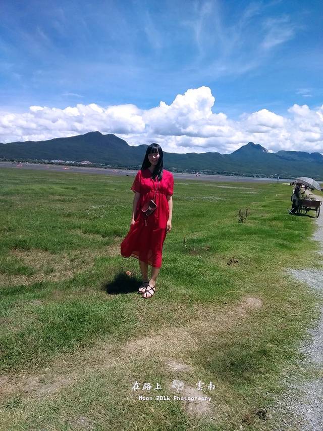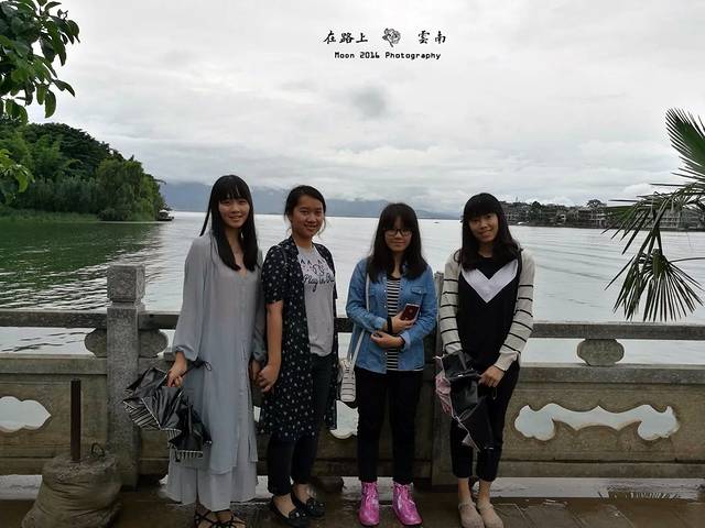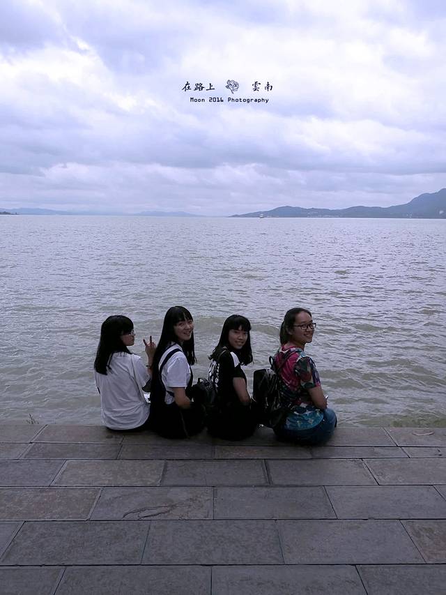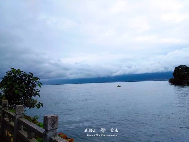 民族村逛一会儿就逛完了,民族村附近就是滇池,所以我们决定走着过去。刚看到滇池的一瞬间真的超兴奋!!虽然那天是阴天,但是宽阔的湖面、白云和远山依然很美!!有种见到大海的错觉哈哈哈。