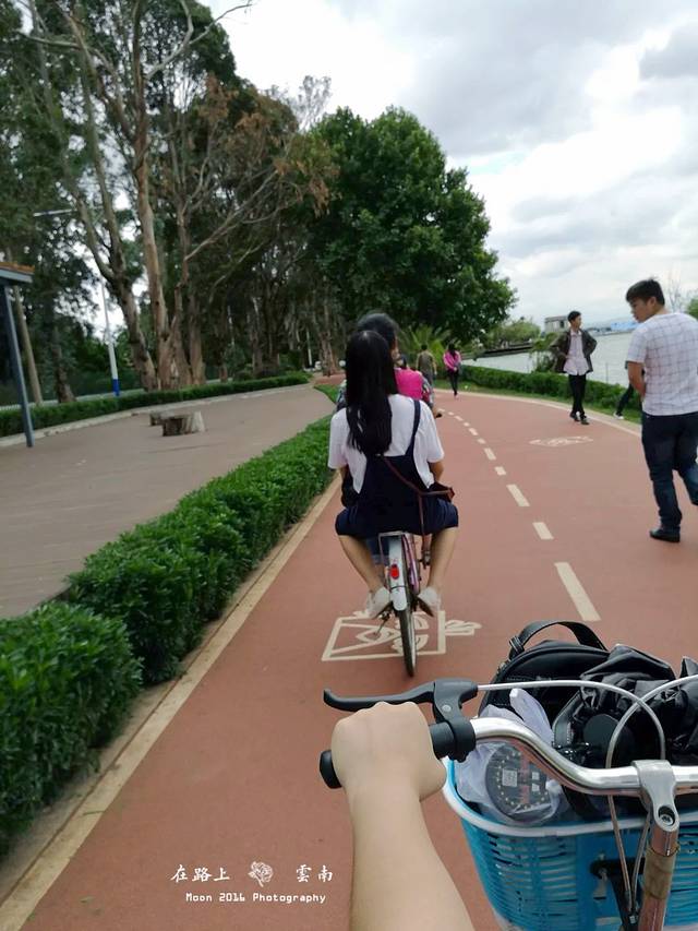 然后我们就租了两辆自行车环湖!!当时还没有共享单车这种造福人民的好东西,不然我们也不用为了省钱一带一了,我坐在后座屁股都要废了...(当然前座是腿要废了)