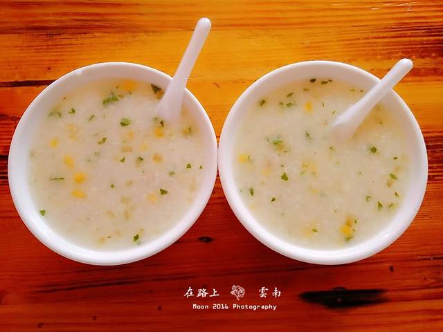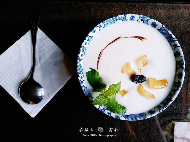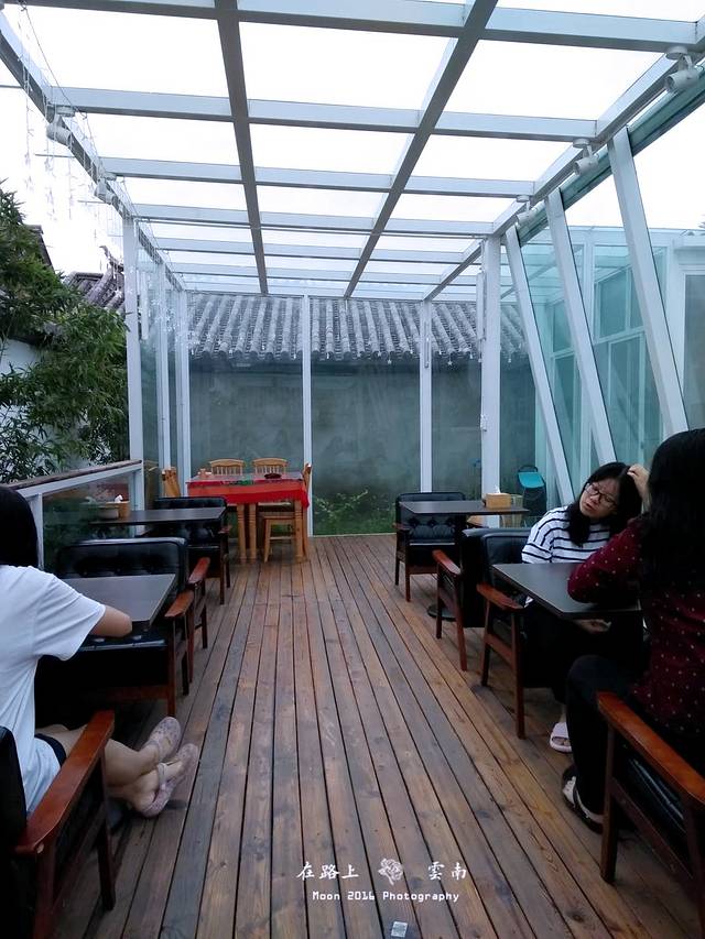 贤惠的掌柜亲自下厨给我们做了早餐。我们在客栈的露天玻璃餐厅吃早餐。