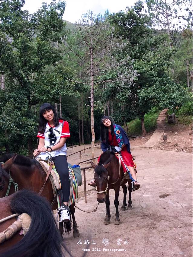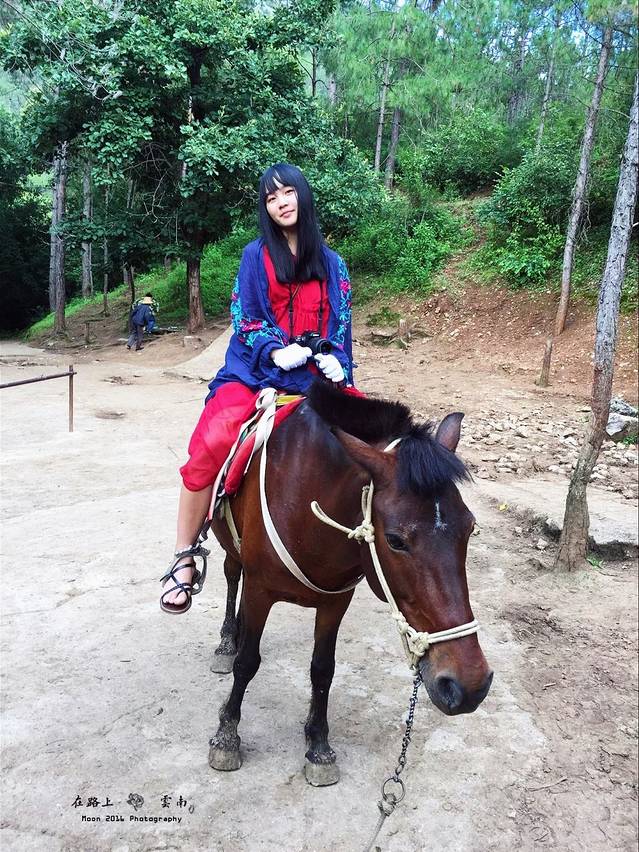 划完船以后的节目是!!骑马!!这个骑马不是骑着平地绕几圈,是真的骑上山啊我的妈!!!山路有多陡峭你造吗!!我觉得我自己爬都费劲,在马背上的时候都为马捏一把汗...实际上也在为我捏一把汗,我超怕它一失蹄就把我甩下去了...事实证明它们都是些出色的好马!!一点事儿都没有!!可太棒了!!而且会有师傅带着我们走,非常有安全感了。(师傅是不是很帅是的。)
