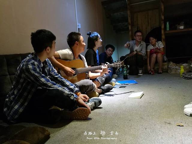 小屋听完歌以后,犹犹豫豫要不要上二楼继续玩。当时自己其实特别自卑,觉得自己特无趣又特拘束,在陌生人面前很尴尬,所以才迟迟不敢上二楼。后来心一狠,怕留下遗憾,一咬牙就上去了。大家就随便地席地坐,一起唱歌,讲自己的故事。来自天南地北的陌生人,无所顾忌地向素不相识的人诉说自己的喜怒哀乐。从墨脱走出来朴实又可爱的小哥,被蕾蕾看上的格子衫小哥哥,声音低沉又好听的小哲哥哥。嗯,都是小屋的“流浪歌手”们呀。