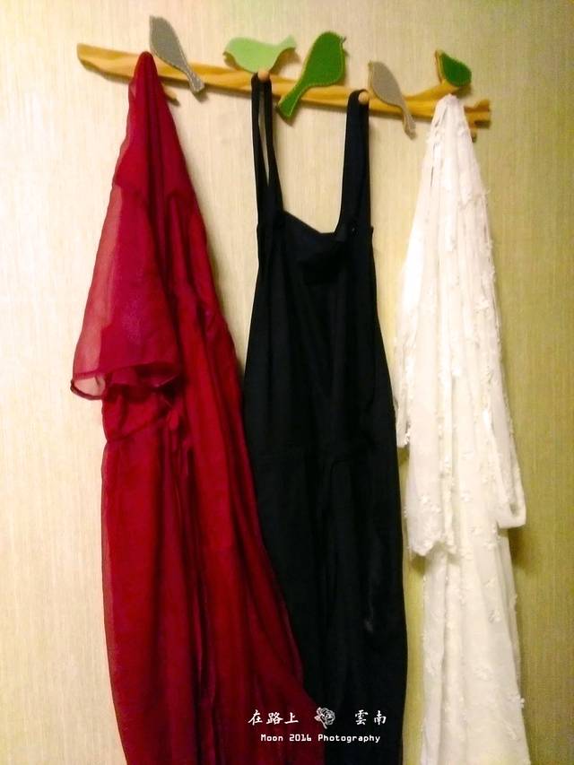 在这家客栈还发生了一个小插曲。因为外面晒衣服的空间有限,我索性把刚洗的衣服晾在了墙上的挂钩上。但是我的裙子掉色!所以直接染在了墙纸上,留下了一块略明显的污渍。我心情非常忐忑,犹犹豫豫觉得还是应该主动告诉掌柜,并赔偿。我心里其实很怕掌柜会趁机宰我一顿,顺便碰个瓷什么的。但她没有,她说“谢谢你能主动告诉我,这样吧,你给我50块就当赔偿了吧。”其实我查过,如果墙纸弄脏,几乎没办法局部去渍,是要换掉整间房子的墙纸的,我想,花费应该远远不止50块吧。你看,又是一个陌生人给予的善意。虽然自己闯了祸,但总觉得自己被温柔对待是赚到了呢。