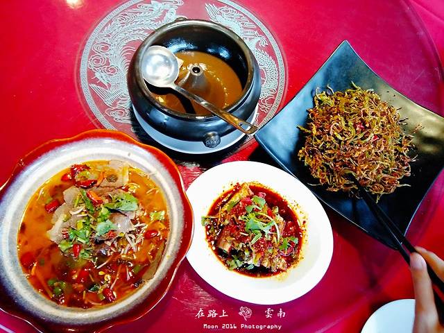 重点是!!!菜份量足还特别好吃!!!太良心了啊啊啊,都是些实实在在的肉肉肉啊啊啊!!!中间被扫荡清楚的那个是汽锅鸡,安宝钦点的云南美食,真的很好吃啊啊啊!!!鸡汤可太太太香了!!!经过这一顿...我们得出了一个结论...还是不要随便找店吃了吧,果然大家推荐的才是好店啊!!!早上在民族村吃的那一顿也太憋屈了!!!