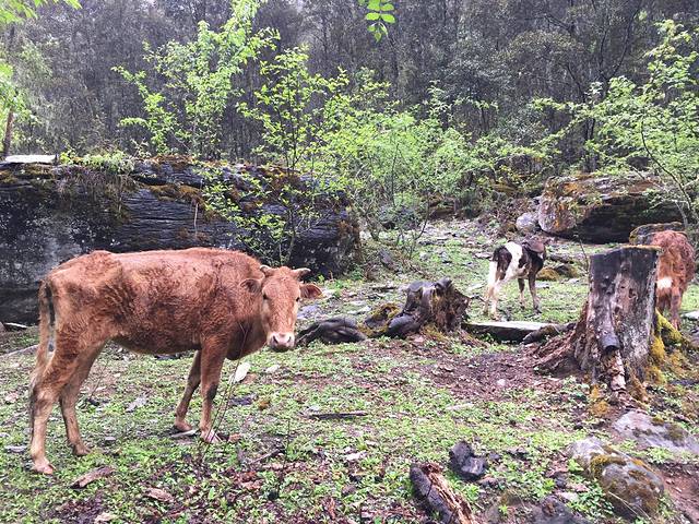 山下林间和草地上都是黄牛,上山了之后海拔高的原因,草场上面喂养的都是牦牛了。