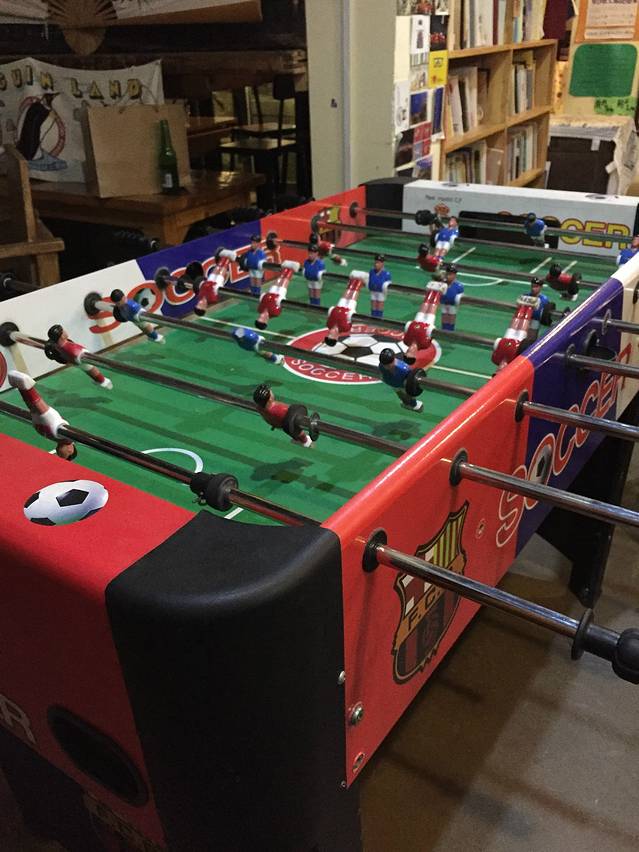 旅行记青旅大厅的桌上足球,奥赛赢了我一把之后打死也不玩了。