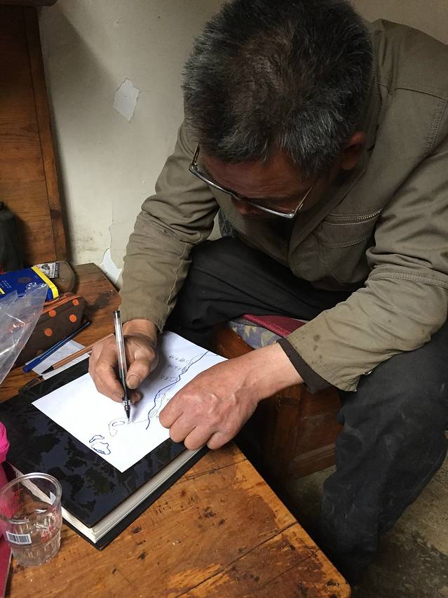 洛桑大叔说是前些年的时候他身子骨好的时候去南宝牧场可以一天走个来回,现在年龄大了,走不了了,只能给大家画张图纸做引导了。