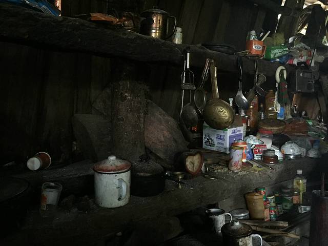 云中大爷小木屋里面的各类家具,还有一个收音机,听大爷说是屋顶的太阳能发电的,感觉在这样的原生态丛林里面居然还能发电,特别厉害。云中大爷热情的招待我们喝了酥油奶茶,路上被雨淋的够呛,烤了一会儿火感觉真舒服。短暂的休息之后就开始了最艰难的一段路程了。