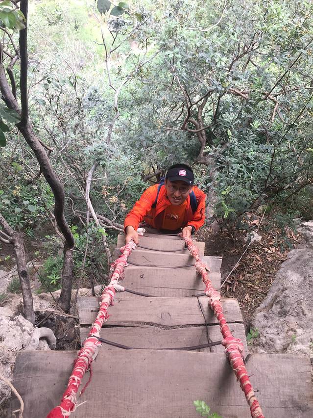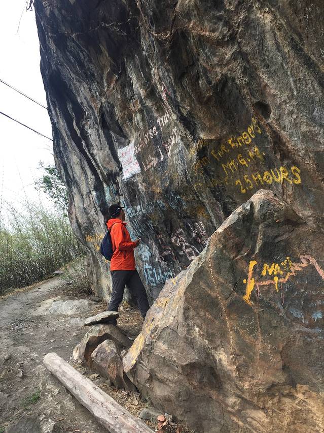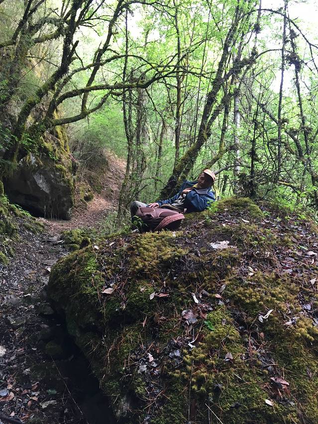 这条路线更难找,一不小心就要迷路在山里,所以带了向导大叔,忘记了名字了。半路上躺石头上等我们。